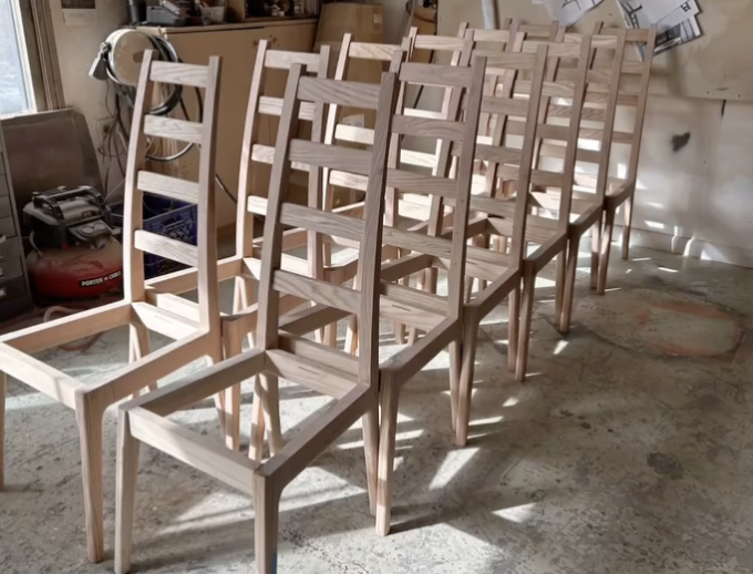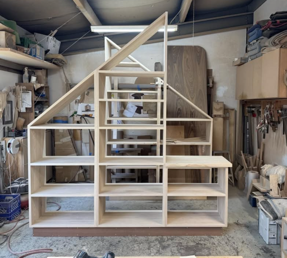You can find my furniture and artwork in homes across the United States and in local North Carolina communities. Most woodworking projects use materials sourced within 100 miles of our workspace, honoring both beauty and sustainability. My paintings explore abstract forms through ink, oil, and collage techniques, capturing the same organic energy I find in working with wood.